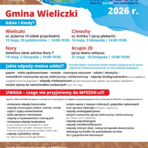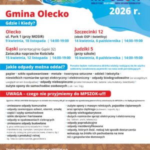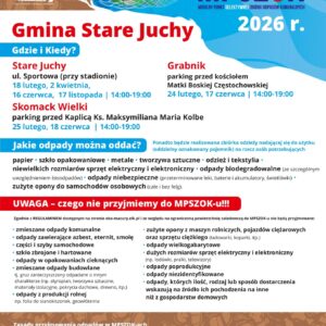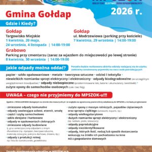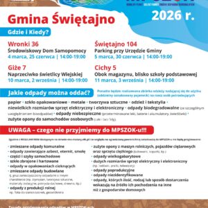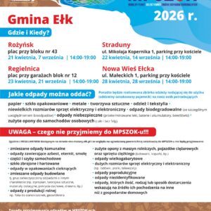 Harmonogram 2026 r. jest już dostępny w galerii – sprawdź i zaplanuj oddanie odpadów oraz odzieży dla potrzebujących! 🙂